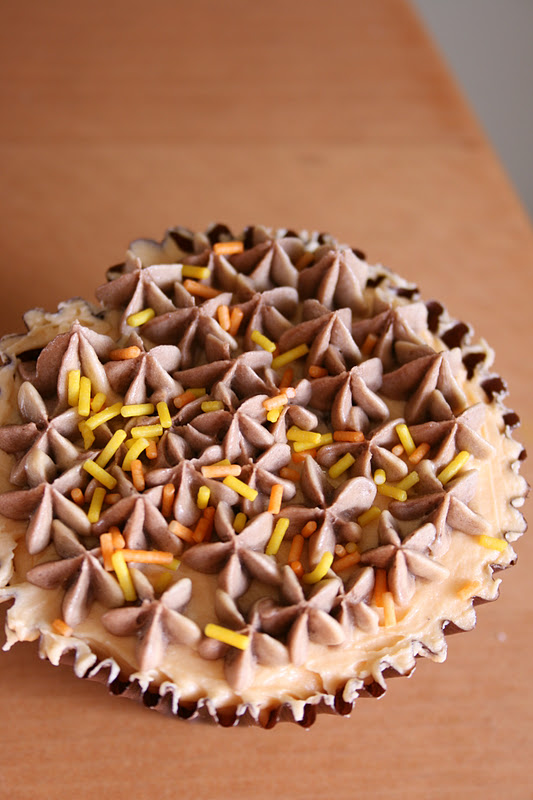 I made a batch of orange and chocolate cupcakes this morning, I wanted to practise the decorating. I made two batches of butter cream and flavoured one orange and one chocolate. I need more practise but wasn't too disappointed with the results. As it was warm in the kitchen I lifted the cakes into the fridge to keep the butter cream from melting and disaster, I dropped them.Fortunately it was into the fridge, I didn't mess them up too much but they definitely didn't look as pretty.